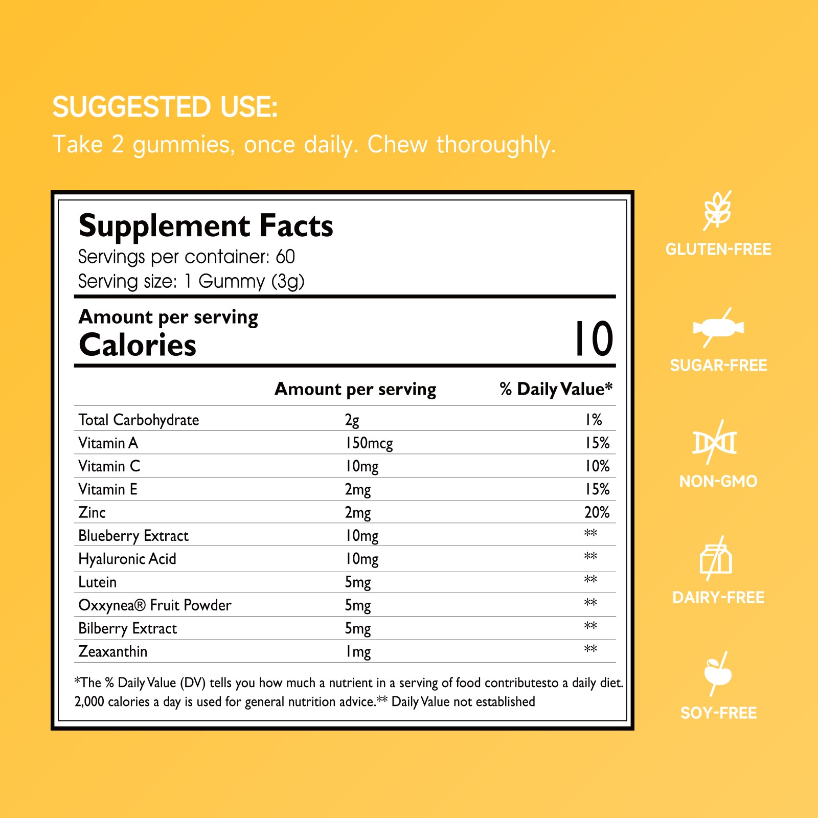 With a refreshing orange flavor, these gummies contain no artificial sweeteners and designed for both kids and adults. The convenient gummy form makes daily eye care easy and enjoyable!